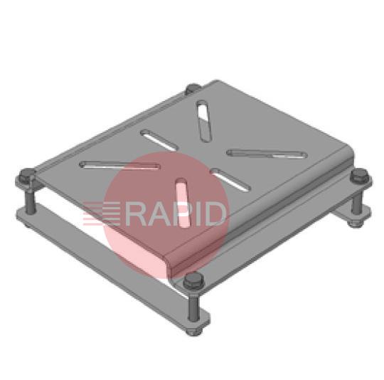 Universal mounting bracket for bench vice. To be connected to the standard work grid of a downdraft table.