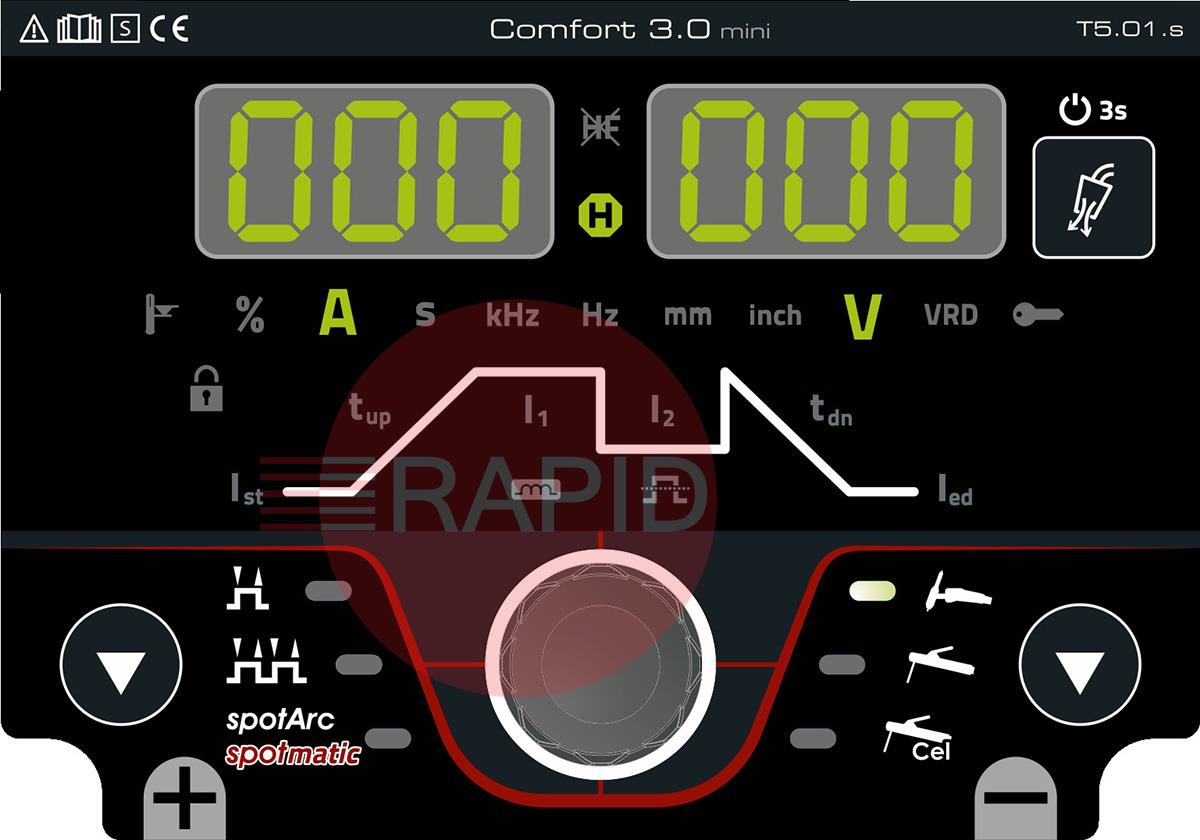 TIG DC inverter welding machine, portable, gas-cooled, 5-pole, with PFC module.