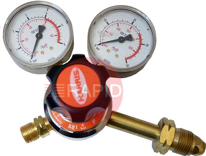 Harris 801 Propane Single Stage 2 Gauge Regulator 4.0 Bar, 5/8" BSP LH Cylinder Connection, 3/8" BSP Outlet, UK Fitting Only
