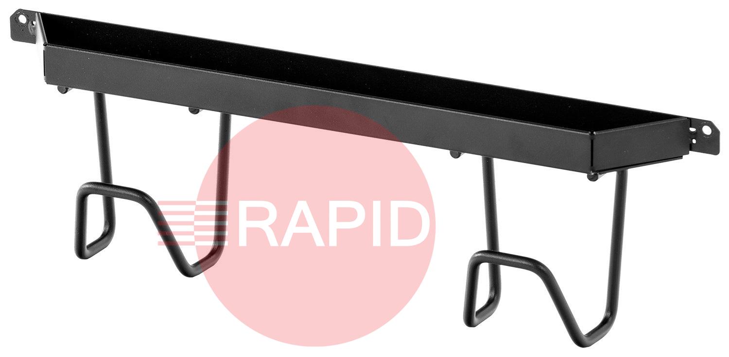 An accessory tray with cable hooks and a long storage tray for parts and tools. Can be installed on either side of the power source.