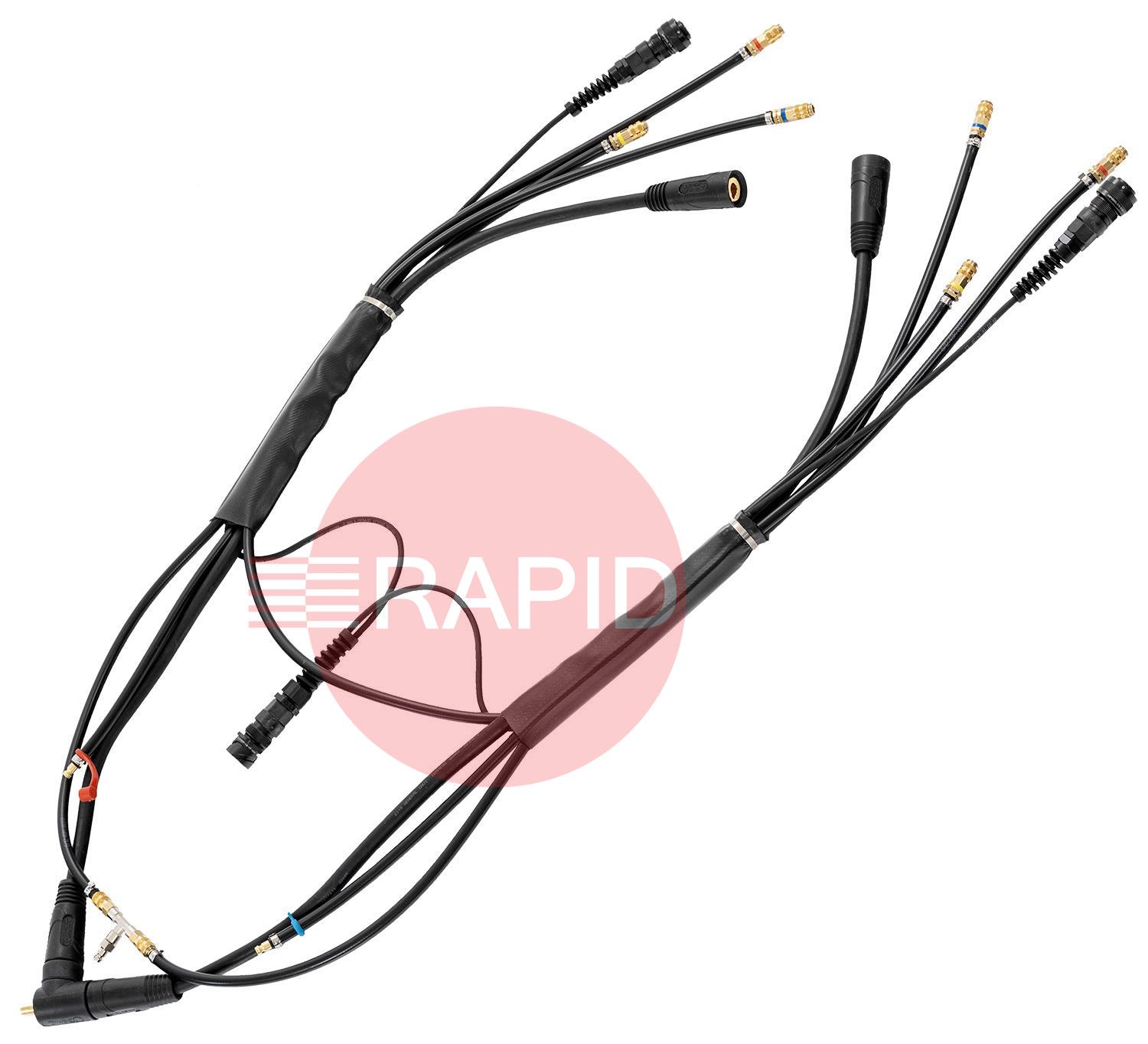For connecting two wire feeders to one power source with X5 Double Wire Feeder Hanger for Boom. Suitable for both water and gas-cooled welding setups.