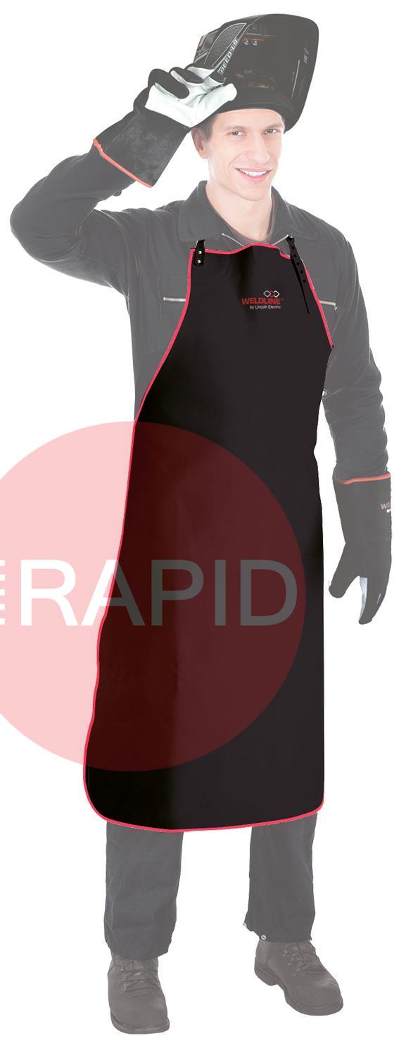The Weldline Grain Leather Apron is designed to protect the clothes of the welder from welding spatters and grinding particles. This apron is fixed with leather straps fixed through bound eyelets to the waist and flap, with leather laces, fastening with rapid connection, sewn finish with a red fabric border and is a single size only. Dimensions 1100 x 800mm.