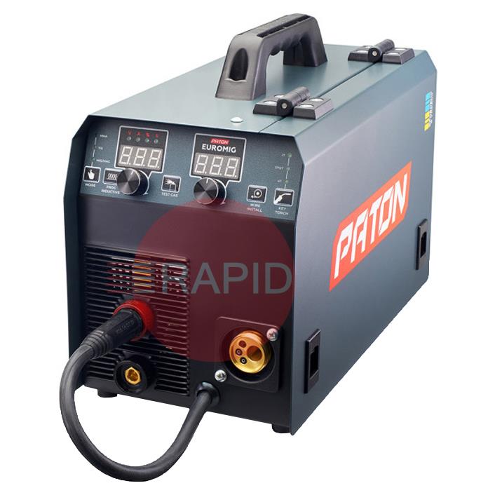 The PATON EuroMIG is ideal for semi-automatic MIG/MAG, MMA and TIG Lift welding. The unit is DC-powered and features PULSE mode for more precise welding control. With an easy-to-use interface and a wide range of functions, this unit is ideal for amateurs and professionals alike. The EuroMIG benefits from an 80% duty cycle and a 3-year warranty.