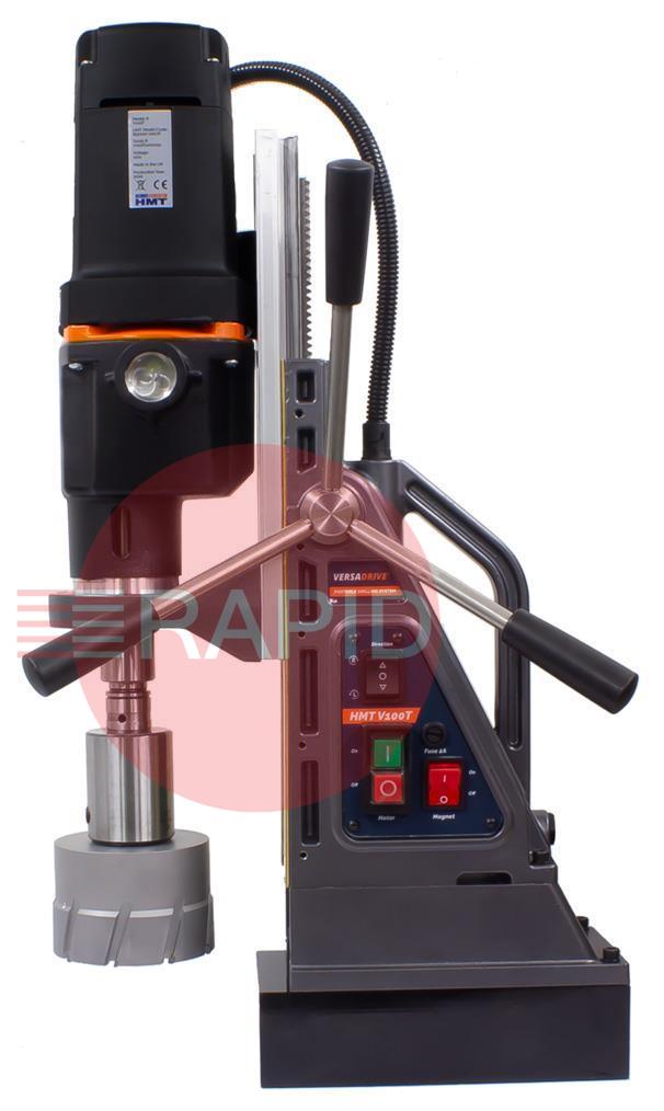 The HMT Steelbor V100T is a portable magnetic drill machine designed to meet high performance and low maintenance to deliver continuous performance in the harshest of drilling and fabrication environments. Being the first UK-made portable drilling machine, the V100T combines lightweight and portability with a high-power all-day broaching capability of up to 100mm in diameter with forward reverse and a variable speed motor that can tap holes up to M30 in diameter. The user can also achieve a broaching level up to 100mm in diameter with the assistance of the VersaDrive blind hole tapping system. This machine is highly rated for reaming, countersinking, and tapping applications with advanced electromagnets (also made in the UK). These electromagnets can provide a superior magnet hold for better safety and stability.