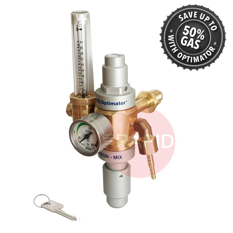 GasiQ Optimator I Argon/Mix Lockable Gas Saver Side Entry Regulator. 34Lpm. G5/8" Cylinder Connection. G3/8" Outlets.