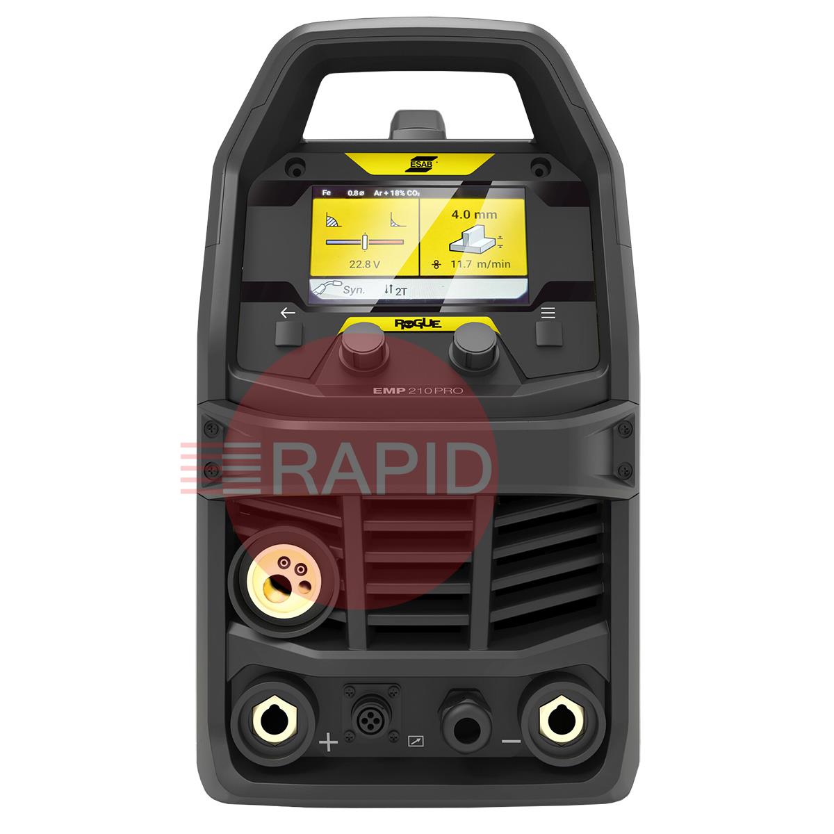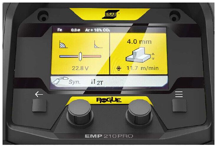 ESAB Rogue EMP 210 PRO is an inverter-based multi-process welding system designed to address all your welding project needs, from light fabrication to repair and maintenance. The system features industrial-grade arc performance and full-featured controls that allow the welder to fine-tune arc characteristics based on the welding material.