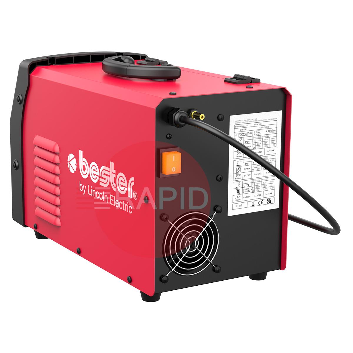 Included with the package is a BesterMIG 200-S power source, 3m MIG gun, 3m welding cable with electrode holder, 3m ground cable with clamp, 2m gas hose, feed rolls (0.6/0.8 and 0.8/0.1mm) and an instruction manual on USB.