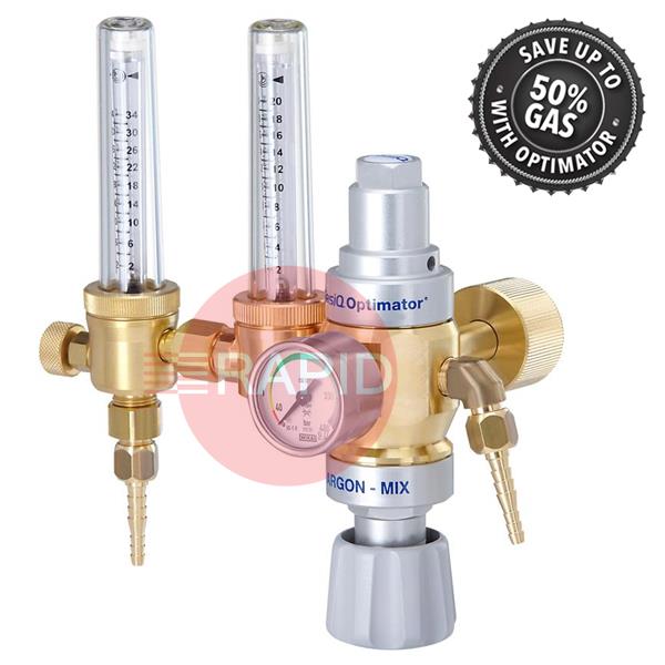 GasiQ Optimator II 300 Bar Argon/Mix Gas Saver Regulator. 20/34Lpm. NEVOC Cylinder Connection. G1/4" Outlets.