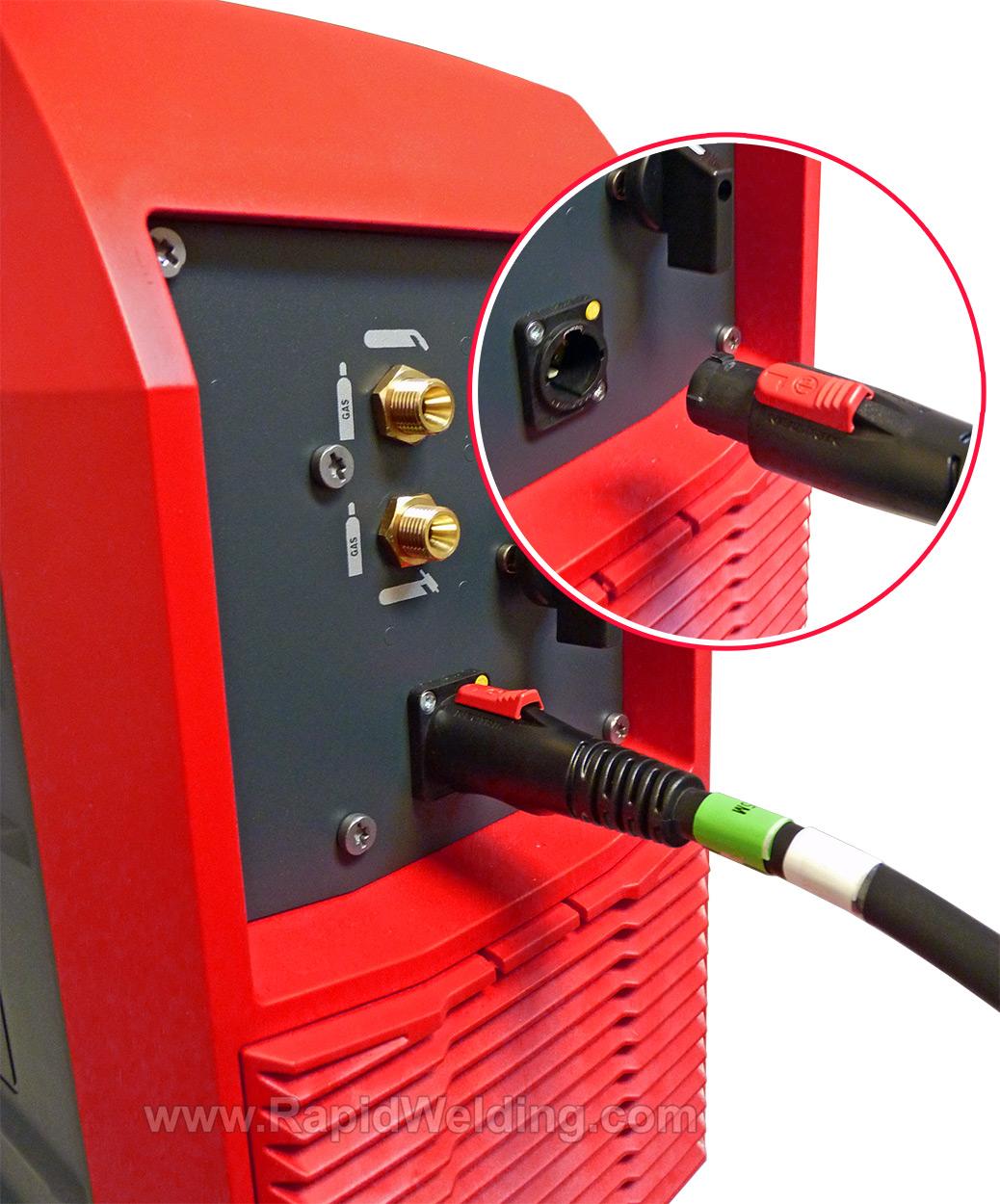 • Easy process switchover thanks to an additional gas solenoid valve on the rear for TIG