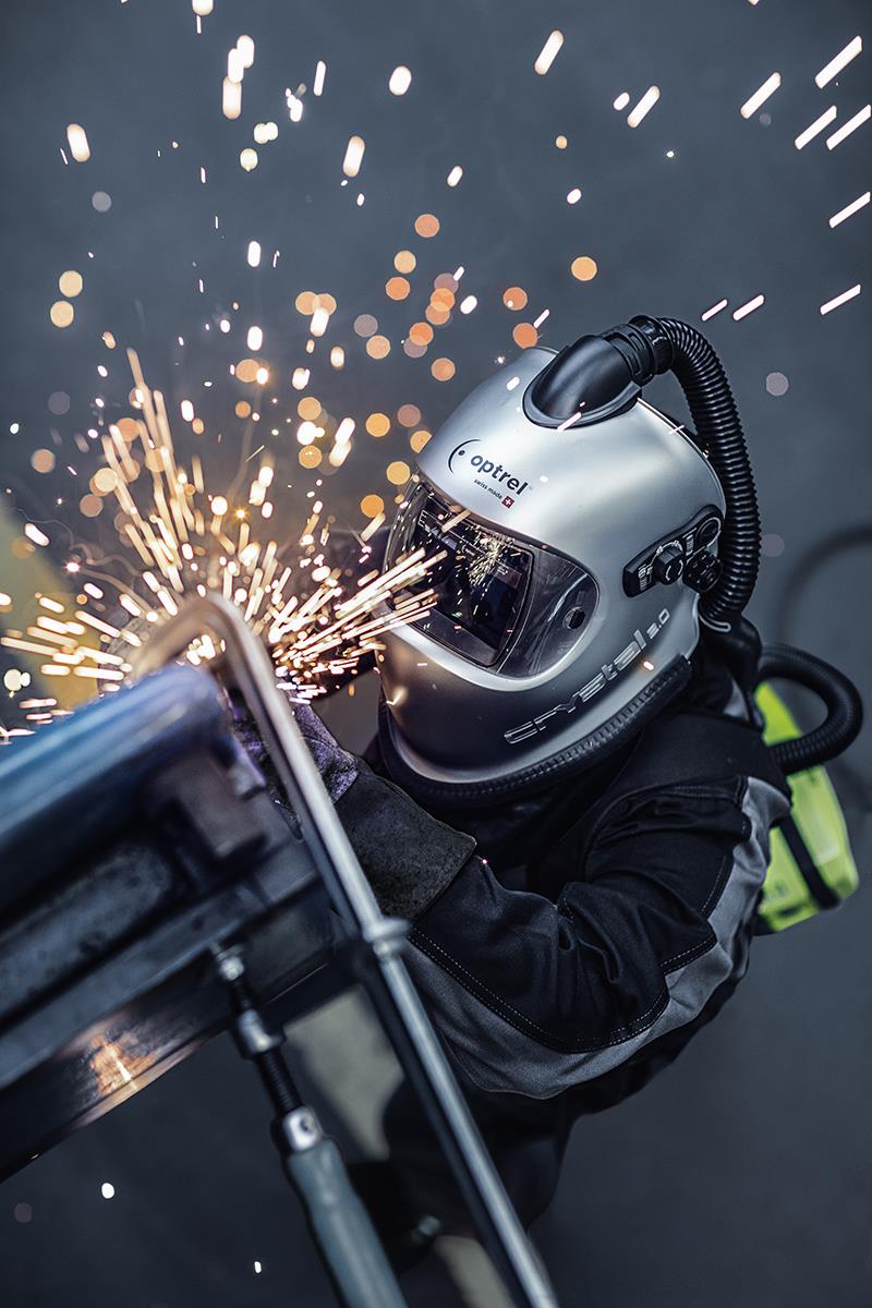 The Optrel E3000X PAPR system is interchangeable between helmets and can also be used with the Clearmaxx Grinding Helmet for more comfort, air and visibility.