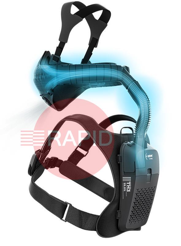 Breathing means living. The Optrel Swiss Air respiratory protection system brings clean breathing air into your environment and lets you breathe as freely as you can otherwise only enjoy outdoors in nature. This unit includes a control panel positioned on the shoulder harness. This includes filter contamination and battery status, air flow control and on/off switch, altitude and temperature compensation.