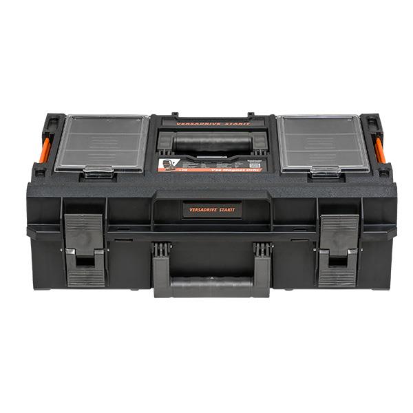 The V35 VersaDrive Magnet Drill is now supplied in the STAKIT Base 200 protective tool case, allowing it to be used seamlessly with the STAKIT system for easy transportation and use on a job site or in the field. This unit is supplied with handles, a heavy-duty metal sliding guard system, a VersaDrive Rapid-Lock adaptor, a heavy-duty waterproof site case, and a gravity-fed coolant system.
