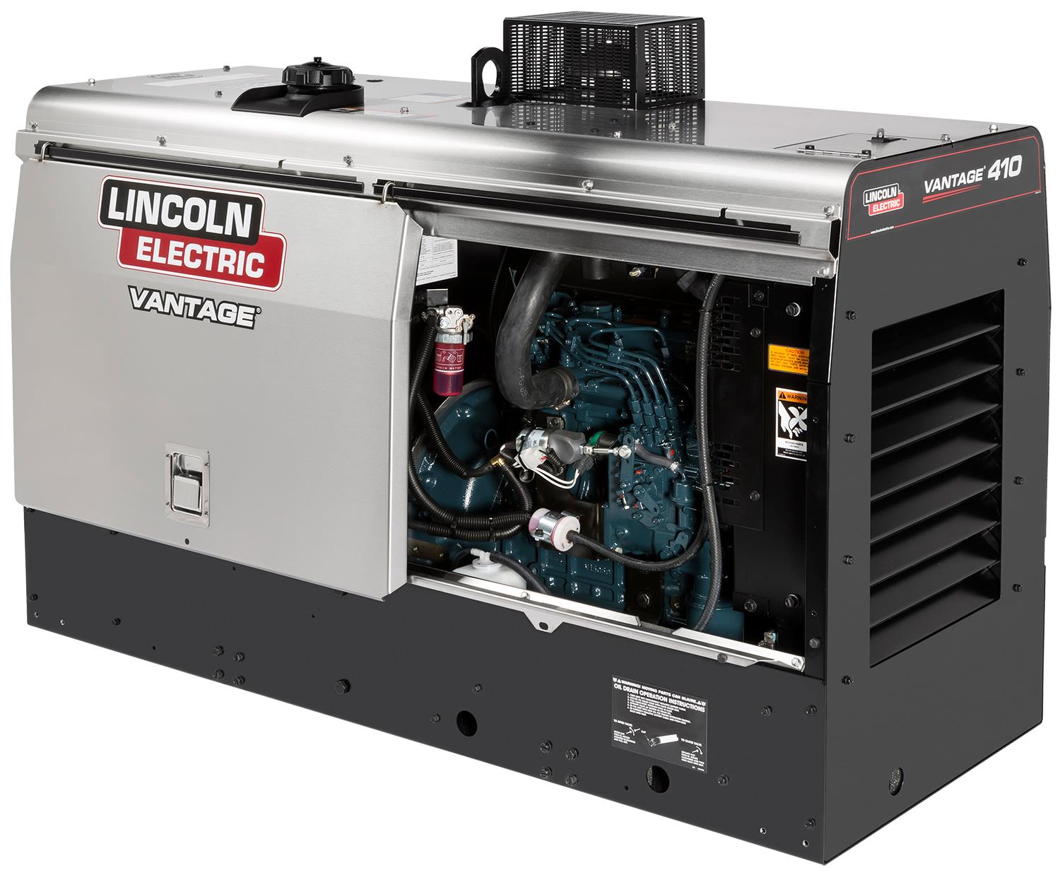 Lincoln Electric’s Vantage 410 CE is a compact and powerful engine-driven welder generator. This machine is ideal for the construction industry, pipeline, and rental fleet managers. The 4-cylinder Kubota water-cooled diesel engine delivers a machine with compelling power generation and multi-process welding modes that include Stick/MMA, Lift/Touch TIG, arc gouging, CV with gas-shielded and self-shielded Innershield wires.